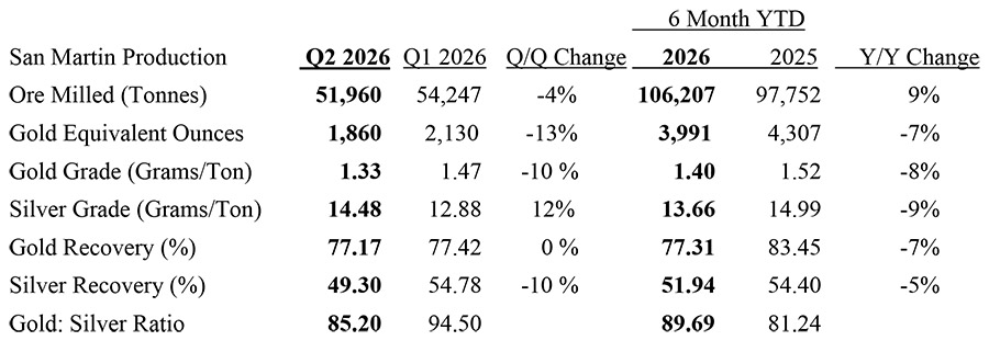 Vancouver, B.C. – Starcore International Mines Ltd. (TSX: SAM) (“Starcore” or “the Company”) announces production results for the first fiscal quarter ended October 2025 at its San Martin Mine (“San Martin”) in Queretaro, Mexico.