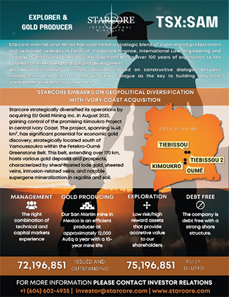 Starcore is committed to increasing shareholder value and developing client relations through a dedicated and professional corporate communications program. This program is aimed at keeping all lines of communication open with investors, institutional and retail brokers. Our objective is fair value and our role is to be an effective information conduit between management and the market.